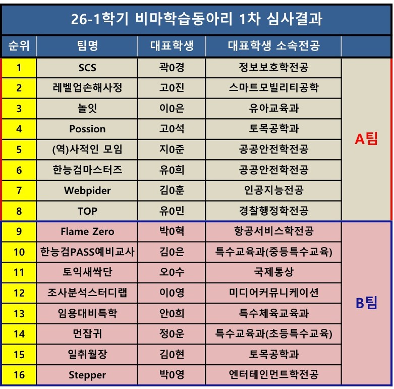 2026-1학기 비마학습동아리 선정 결과 발표