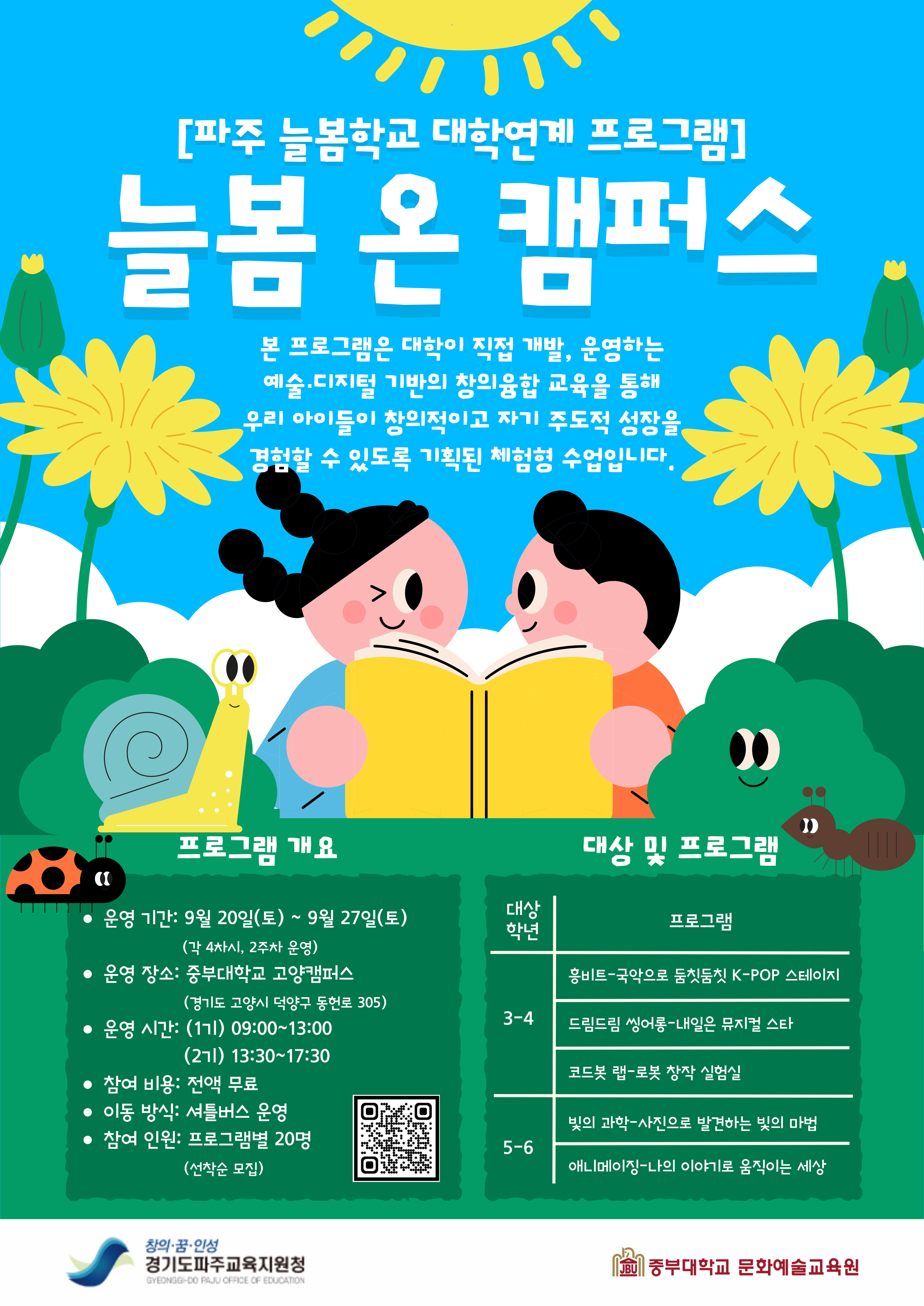 본 프로그램은 파주교육지원청과 중부대학교가 함께 운영하는 「2025 파주 늘봄학교 대학연계 주말 집중형 프로그램」입니다.