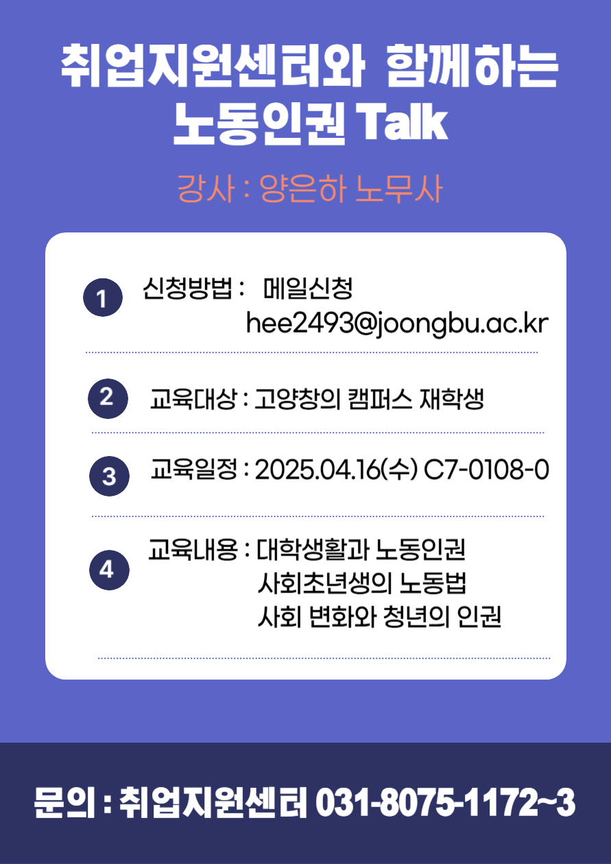 [취업ㆍ창업지원센터-고양창의] 2025학년도 경기도 노동인권 Talk 특강 안내