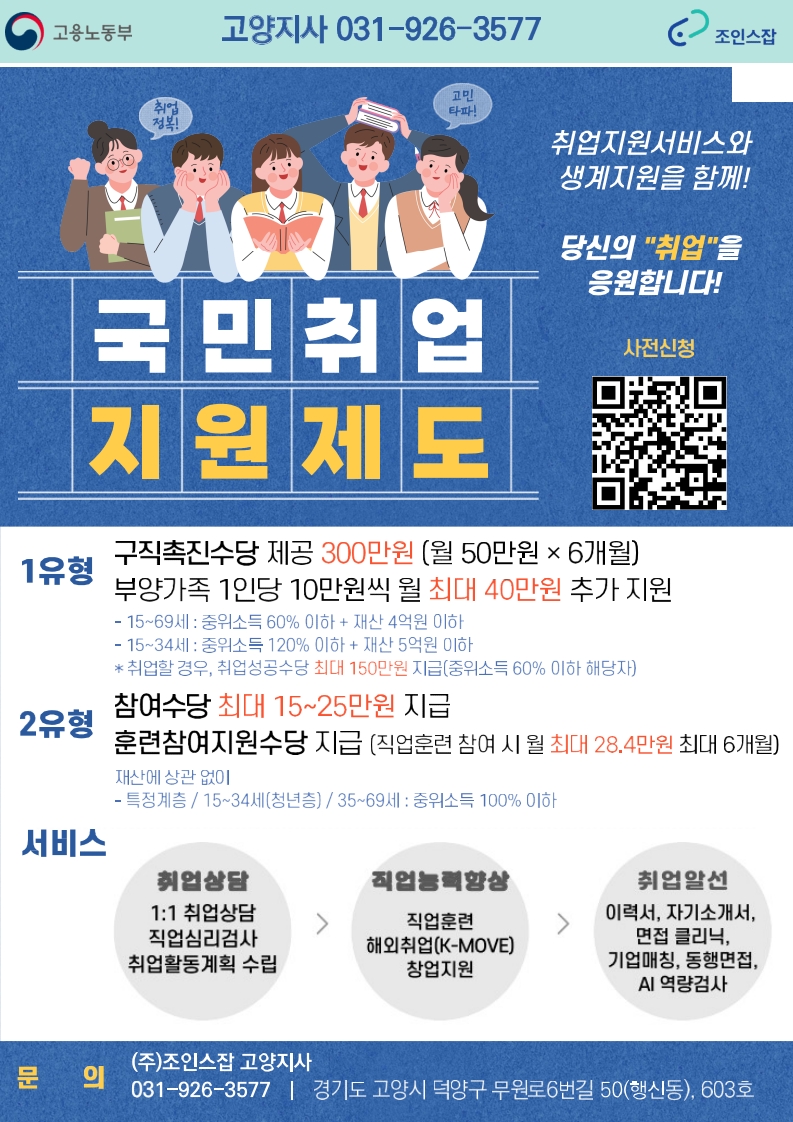 - 수당 : 1유형은 구직촉진수당 50만원X6개월 지급