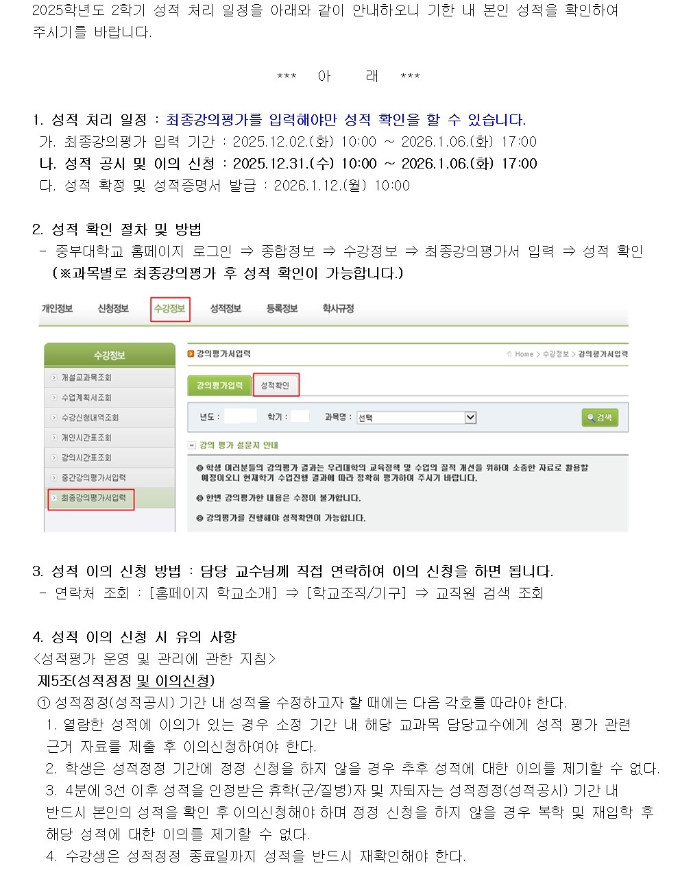 2025-2학기 성적공시 및 성적확정 안내