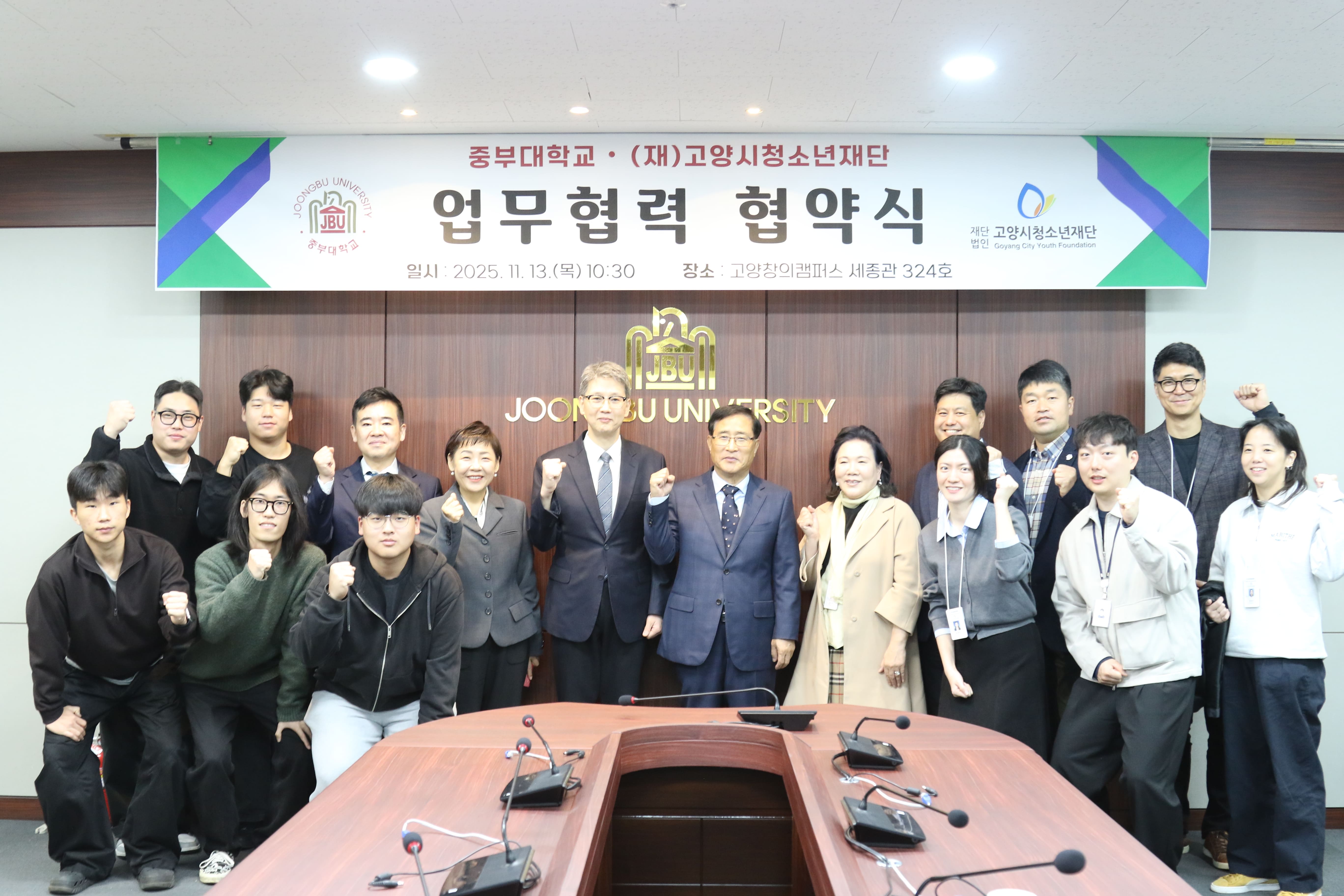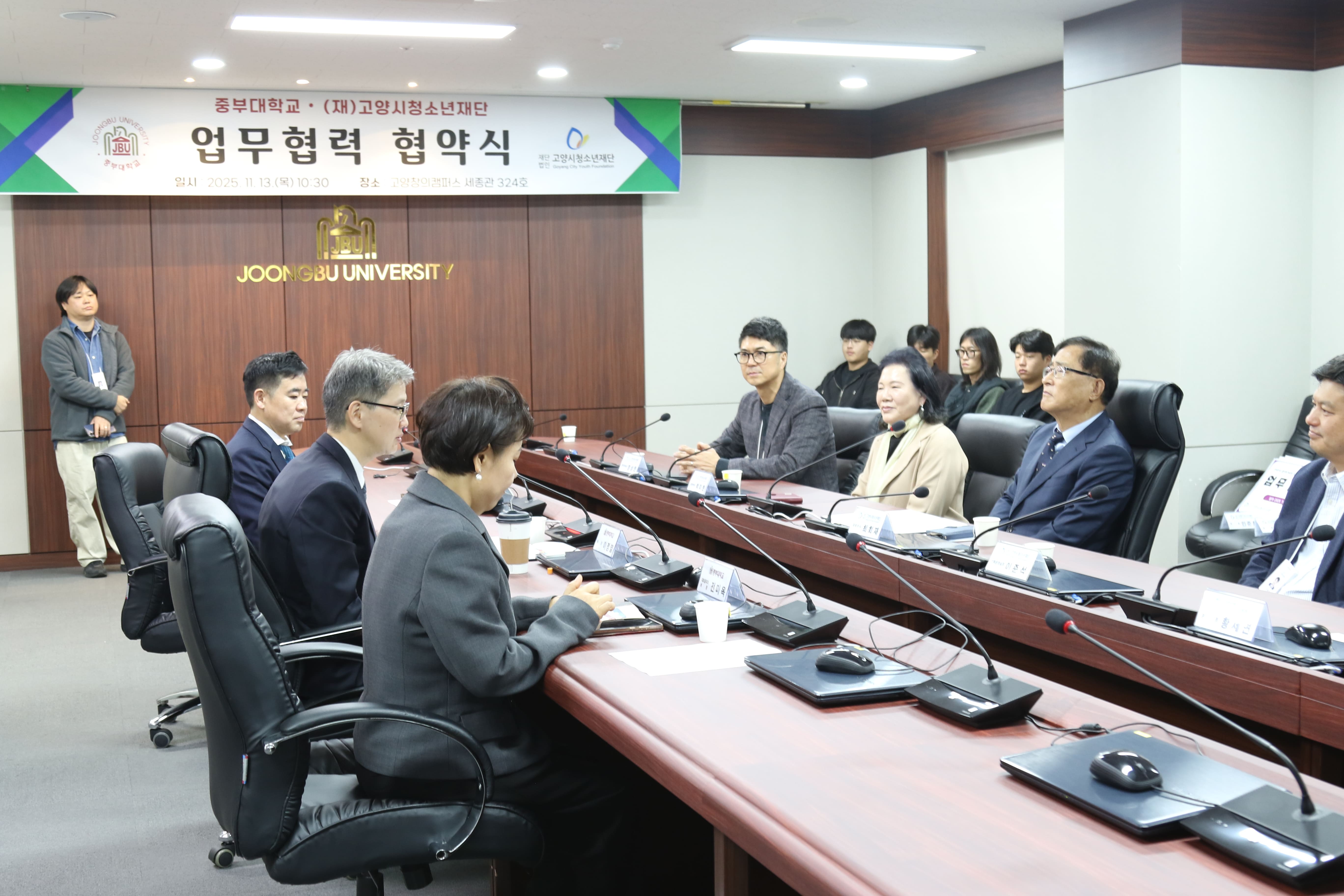 이날 행사에는 중부대학교 이정열 총장, 전미옥 대외협력처장, 이재웅 교수와 고양시청소년재단 최회재 대표이사, 박미현 경영본부장, 이준석 기획운영실장, 조승일 과장, 민준희 과장, 정상헌 경영지원실장, 황세연 토당청소년수련관 관장 등 양 기관 관계자 14명이 참석했다.
