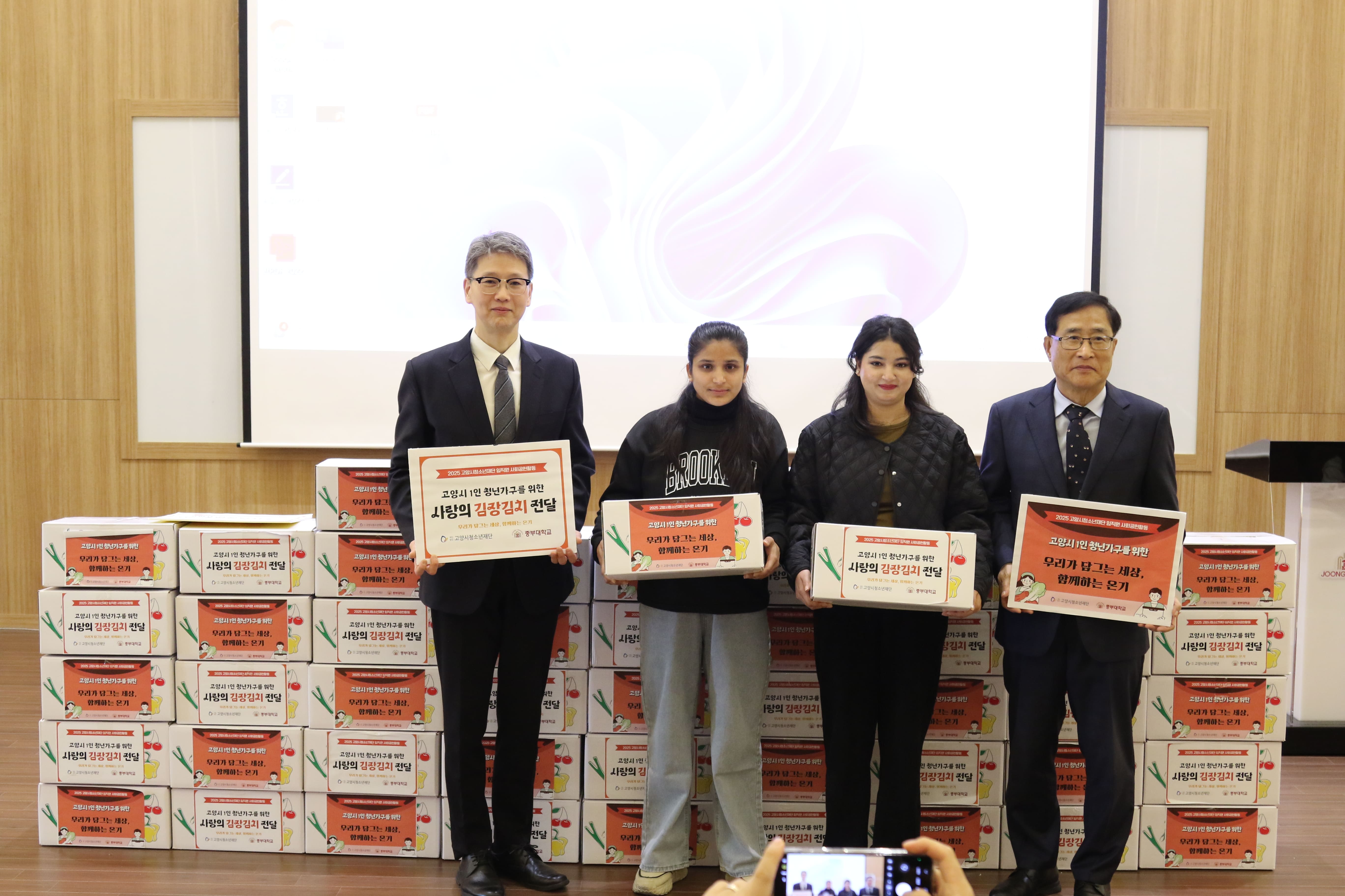 특히 이날 협약식에서는 고양시청소년재단이 진행하는 ‘사랑의 김치박스 나눔’ 사회공헌활동도 함께 이루어졌다. 재단은 임직원들이 직접 재배하고 정성껏 담근 김장김치를 중부대학교 네팔 유학생들에게 전달하며 따뜻한 마음을 전했다.
